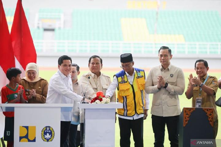 Di atas panggung utama, Presiden Prabowo, didampingi sejumlah pejabat negara dan pengurus Persatuan Sepak Bola Seluruh Indonesia (PSSI), menekan tombol simbolis sebagai tanda peresmian. “Saya, Prabowo Subianto, Presiden Republik Indonesia, dengan ini meresmikan renovasi dan pembangunan 17 stadion di Indonesia telah selesai dilaksanakan,” ujar Presiden Prabowo dalam pidatonya.