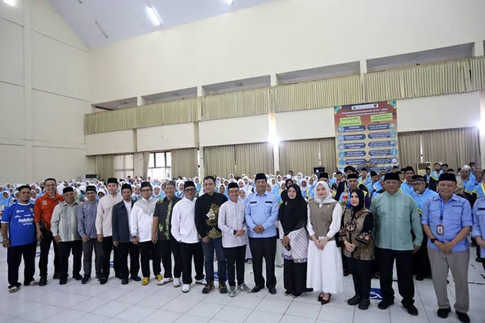 Pimpinan dan Anggota DPRD Kota Bandung melepas keberangkatan calon jemaah haji Kota Bandung Kloter 26 Tahun 2025, di UPT Asrama Haji Embarkasi Bekasi, Senin, 12 Mei 2025. Ariel/Humpro DPRD Kota Bandung.