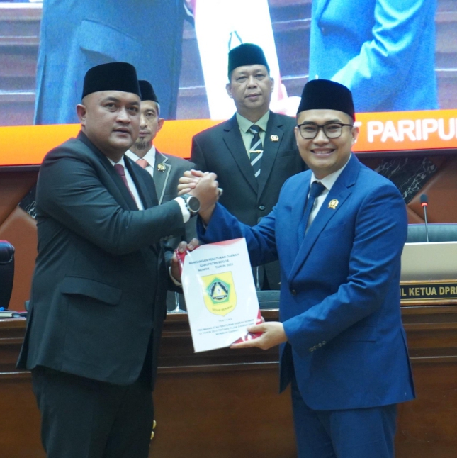 CIBINONG- Bupati Bogor, Rudy Susmanto, lakukan Rapat Paripurna bersama Dewan Perwakilan Rakyat Daerah (DPRD) Kabupaten Bogor yang berlangsung di Ruang Paripurna DPRD Kabupaten Bogor pada Jumat (22/5/25). Dalam kesempatan tersebut, Bupati Bogor menyampaikan tiga rancangan peraturan daerah (raperda) yang menjadi prioritas Pemerintah Kabupaten (Pemkab) Bogor.