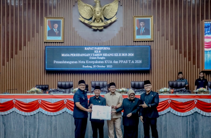 Penandatanganan dilakukan oleh Wali Kota Bandung, Muhammad Farhan, bersama pimpinan DPRD dalam Rapat Paripurna di Gedung DPRD Kota Bandung, Senin 20 Oktober 2025.