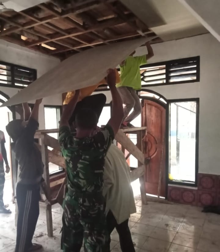 Prajurit TNI terlihat antusias berbaur dengan masyarakat, mengangkut material, dan melakukan pekerjaan renovasi, mulai dari perbaikan atap hingga pengecatan.