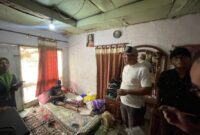 Anggota Komisi II DPRD Asep Robin, S.H., M.H., saat meninjau rumah yang nyaris ambruk, di Kelurahan Pasir Impun, Jumat, 7 November 2025. (Ridwan Adhi/Humpro…