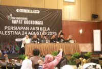 Pimpinan DPRD Kota Bandung, Dr. H. Edwin Senjaya, S.E., M.M., memberikan sambutan dalam Rapat Persiapan Aksi Bela Palestina, di Hotel Grand Preanger, Rabu, 13…