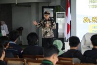 Wakil Ketua DPRD Kota Bandung Dr. H. Edwin Senjaya, S.E., M.M., saat menjadi narasumber acara pembukaan Sekolah Ideologi HMI Komisariat Syariah dan Hukum UIN…